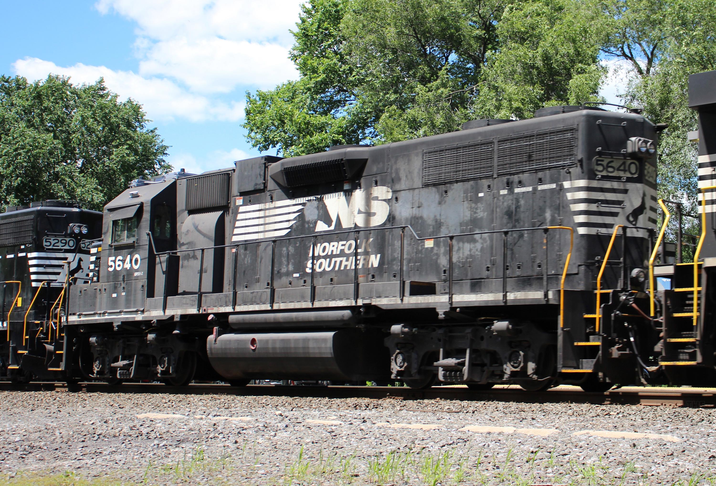NS 5640 is seen on 10N at Huntingdon, PA on 6/15/18. Unit is ex NS 2957/CR 7939/PC 7939 and was rebuilt by NS to a GP38-2 and was released from JBS in May of 2006.