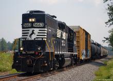 PC/CR 7737 NS 2914 GP38, rebuilt to GP38-2 NS 5663, heads west with H44 local on the NS Watsontown Secondary.
