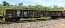 NS 617219 is seen in the consist of EB NS 61Z at Wyomissing, PA on 8/16/14. Car is ex CR 576268/PC 576268 and was built 3-68.