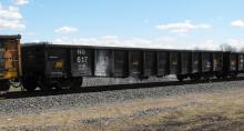 NS 617347 is seen on NS 67Z at Marysville PA on 3/30/13. Car was rebuilt from a former CR G43A class gon.