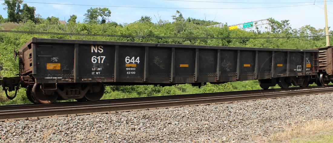 NS 617644 is seen in the consist of EB NS 61Z at Wyomissing, PA on 8/16/14. Car is ex CR 577721/PC 577721 and was built 5-68.
