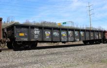 NS 617674 is seen in the consist of EB NS 61N at Wyomissing, PA on 4/16/15. Car is ex CR 577837/PC 577837 and was built 5-68.