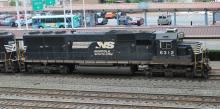 Former NS 5417/CR 6729 is seen is seen on the rear of NS 25Z at Altoona PA on 6/13/14. Unit was the first ex CR SD50 to be rebuilt by NS to a SD40E and was released from JBS in Feb of 2009.