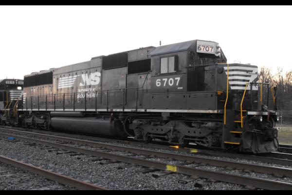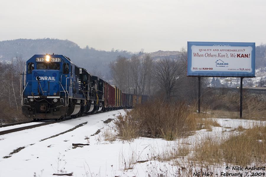 A pair of ex-Conrail SD60s (NS 6711, ex-CR 6857) lead NS C40-9W 9915 and twenty cars towards Allentown from Hazelton. They are currently on former CNJ trackage between Lehighton and Allentown.