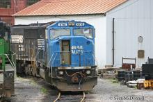 Former Conrail SD60I 5578 sits behind the E&M shop at Juniata, PA on 5/11/2008. I fear she may not escape from this spot still wearing blue paint.