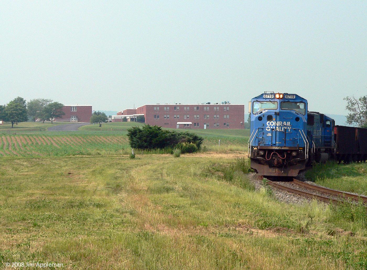 NS 537 empty PPLX hopper train is stopped at Warrior Run on the Watsontown Secondary awaiting permission from the dispatcher to proceed west to CP-WAT onto the Buffalo Line at Watsontown.