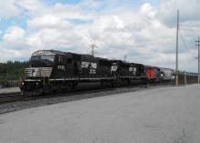 NS 6725 (CR 5590), NS 1003 & CN 5291 are seen on CSX K479-22 at Elsmere DE on 5/23/13.