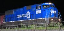 Former Conrail SD60I is seen pulling the NS exhibit car east across Shermans Creek in Duncannon on 8/16/2008. Lighting provided by the brilliant Brian Alesin.