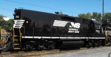 Former CR 7924 is seen after being rebuilt to a RP-E4C road slug. Unit is seen on 36A at Newark DE on 9/3/09 and is mated to NS 3021.