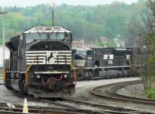 NS 7203 ex-CR 4105 and NS 7209 ex-CR 4119 SD80 MACs are in a lineup of SD80MACs.