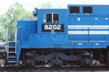 Previous Next Detail view of former CR 6004 at West Brownsville, PA on 8/2/99. Photo By Jeff Weaver Equipment Type GE C39-8 Conrail Number 6004 Post Conrail Owner Norfolk Southern Post Conrail Number NS 8202 Year 1999 Original Date 8/2/99 Collection CRHS Conrail Photo Archive Contributions