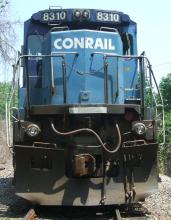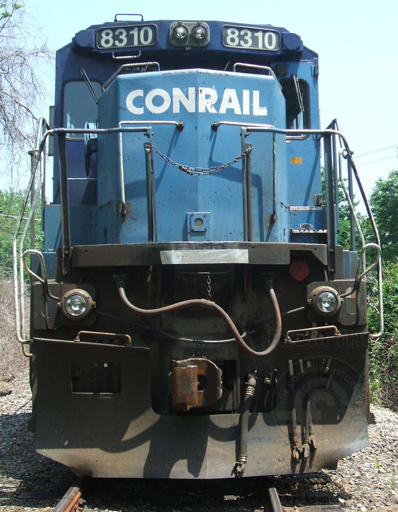 Head on view of former CR 6045 at Deepwater NJ on 6/8/08. Note the different shade of blue around the numberboard casting and also on the engineer side window. Also, 8310 has a NS style plow.