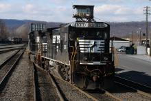 Former Conrail C40-8 6046 leads intermodal train 20V down to MacClay Street where the crew will start the tedious task of shifting it out.