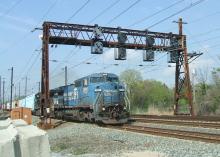 Former CR 6102 leads 36A under the former PRR signal bridge at Davis interlocking in Newark DE on 4/23/08.