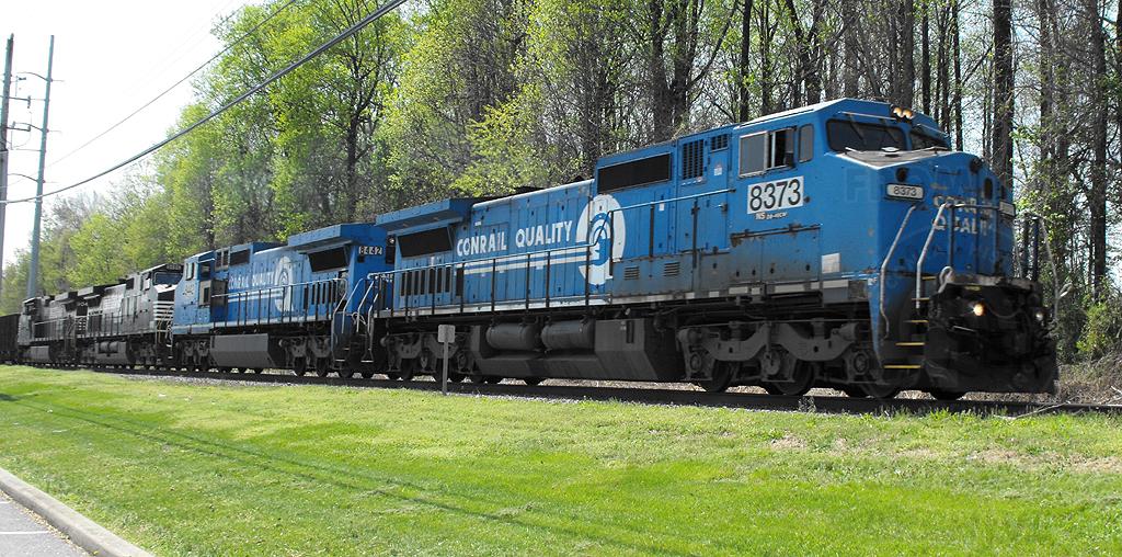 Former CR 6152 leads former CR 6269/CR 743 and two NS Dash-9's on 13G at Newark DE on 4/11/10.