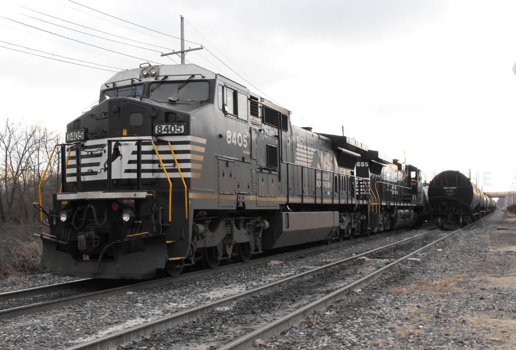 Former CR 6207 & NS 9685 are seen on CSAO train CA-11 at Paulsboro NJ on 2/12/12.