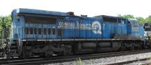 Former CR 6283/CR 757 is seen at Deepwater NJ on 6/14/09. Note the medium size Conrail Quality and how it is towards the long hood of the unit. Also the engine compartment is a darker shade of blue. The fireman side of this unit has the standard C40-8W logo.