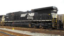 A rear view of former LMS 717 is seen at Deepwater, NJ on 12/20/13.