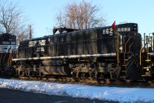 NS 862 is seen on NS 33A at Allentown, PA on 2/28/15. Slug is ex NS 978/NS 1108/CR 1117/PC 6859/PRR 6859.