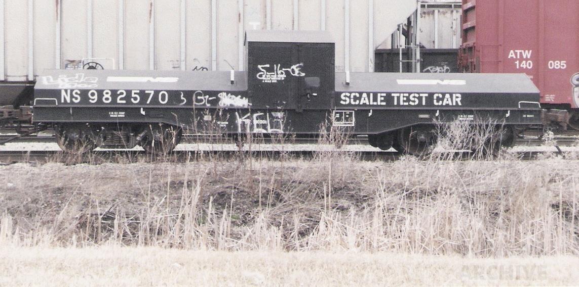Previous Next NS 982570 ex Conrail scale test car at New Haven, IN back in March 2011 Photo By Chris Howe Equipment Type Scale Test Cars Conrail Number 80097 Post Conrail Owner Norfolk Southern Post Conrail Number NS 982570 Year 2011 Original Date 3/1/11 Collection CRHS Conrail Photo Archive Contributions