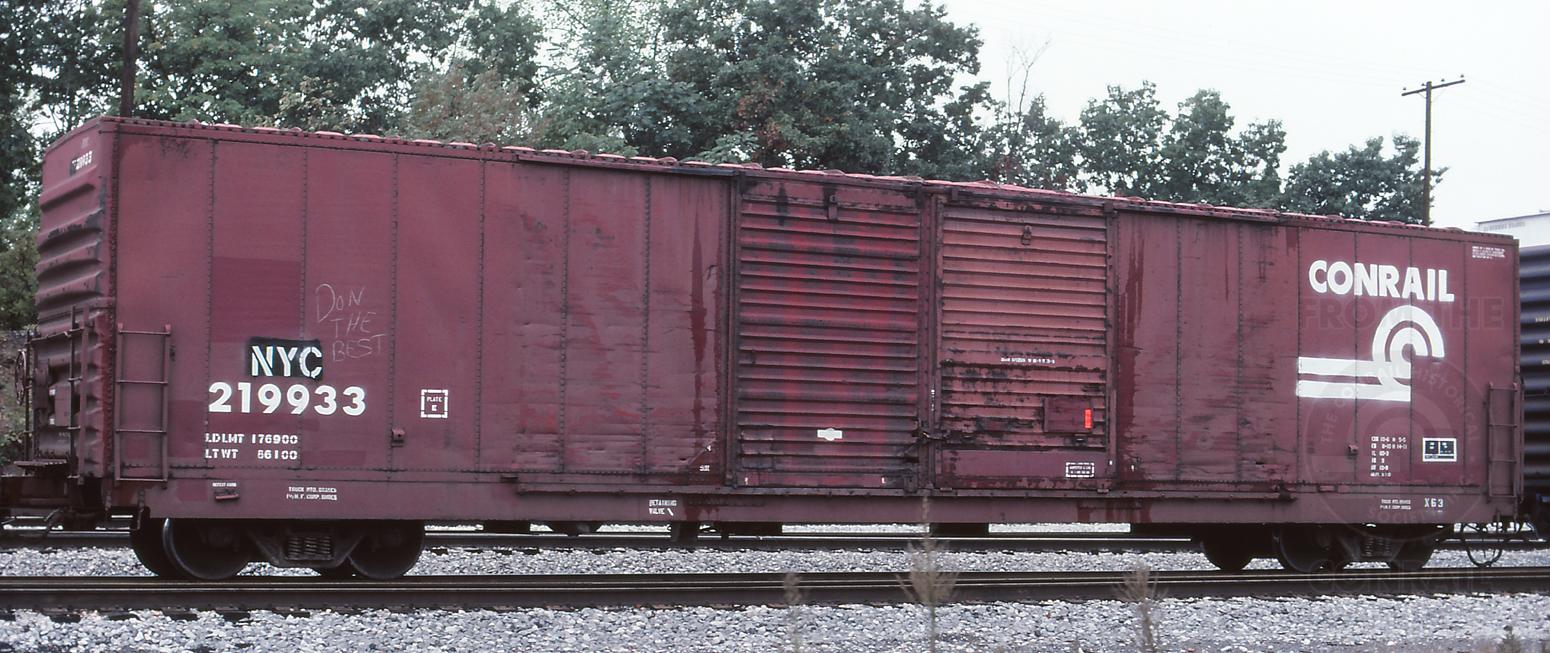 Previous Next Photo By Jeff Weaver Car is ex CR 219933/PC 219933 and was built 11-68. Equipment Type Class X63 Conrail Number 219933 Post Conrail Owner CSX Post Conrail Number CSX 219933 Year 1999 Original Date 9/28/99 Collection CRHS Conrail Photo Archive Contributions