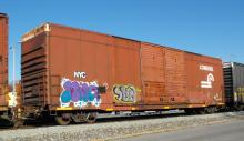 NYC 221281 is seen on Q398-12 at Brunswick MD on 11/12/11. Car is ex CR 221281/PC 220699 which was built as a PC class X62B.