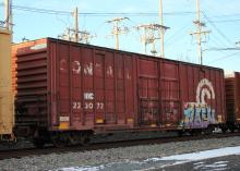 NYC 223072 is seen in the consist of CSX L120-26 at Newark, DE on 1/26/25. Car is ex CR 223072 and was built 12-77 by Berwick.