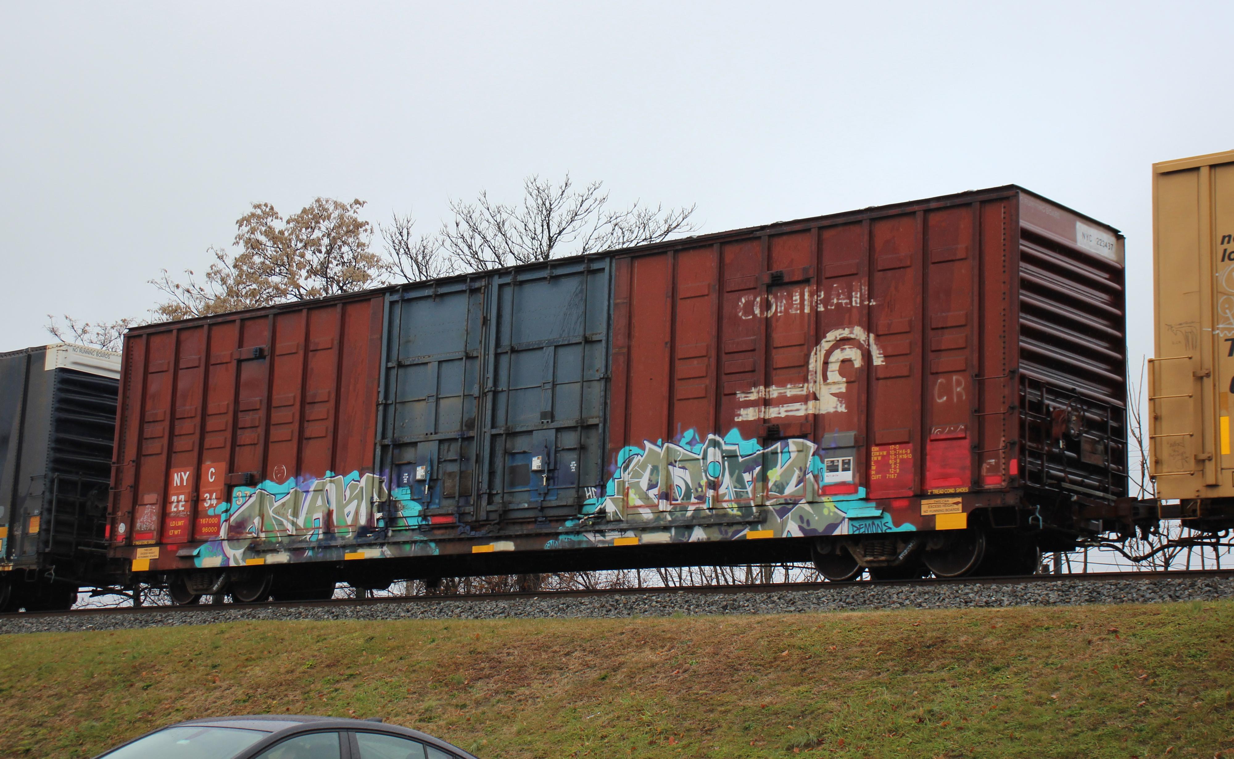 NYC 223437 is seen in the consist of CSX Q372-29 at Newark, DE on 12/30/21. Car is ex CR 223437 and was built 12-78 by Berwick.