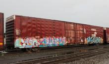 NYC 242283 is seen at Cumberland, MD on 6/12/14. Car is ex CR 242283/CR 295188/PC 295188 and was built 8-69.