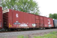 NYC 297705 is seen in the consist of CSX Q372-07 at Newark, DE on 5/8/22.Car is ex CR 297705 and was built 4-78 by Greenville Steel Car.