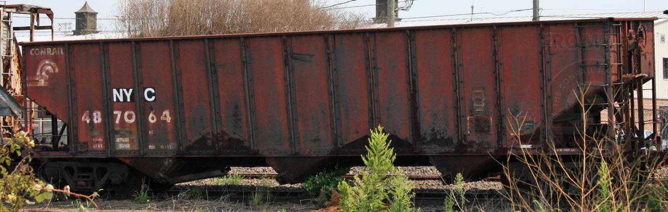 NYC 487064 ex CR 487064 H1A Blt 10-76 bad ordered at Harrington DE. Car is marked as being owned by CSX but has been sitting near the NS yard for years.