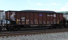 NYC 504562 is seen in the consist of CSX T876-05 at Cumberland, MD on 6/14/14. Car is ex CR 504562/PC 480838, built 11-71 and rebuilt 8-91.