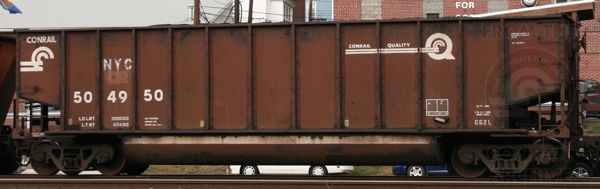 Previous Next Car was rebuilt 1-92 from PC 481874, a class H43D hopper built 1-72. Photo By Donnie Lee Equipment Type Class G52L Conrail Number 504950 Post Conrail Owner CSX Post Conrail Number CSX 504950 Year 2011 Original Date 7/29/11 Collection CRHS Conrail Photo Archive Contributions