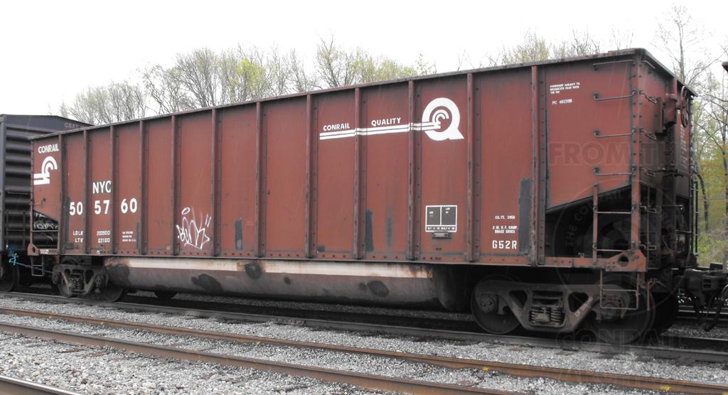 NYC 505760 is seen in storage at Elsmere DE on 4/23/11. Car is ex PC 482398 blt 4-72 reblt 6-92.