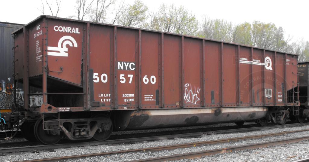 NYC 505760 is seen in storage at Elsmere DE on 4/23/11. Car is ex PC 482398 blt 4-72 reblt 6-92.