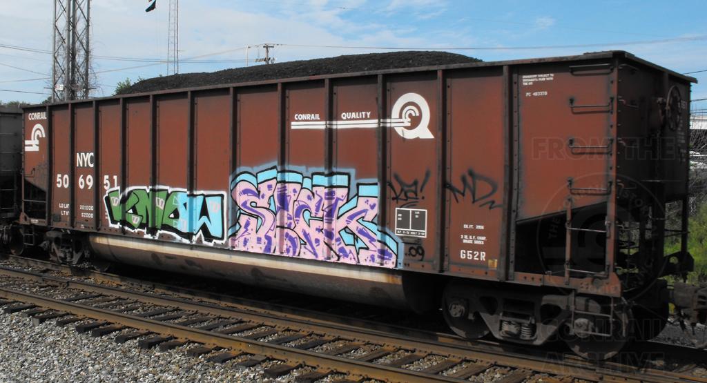 NYC 506951 is seen on V778-28 at Elsmere DE on 8/31/09. Car is ex CR 506951/PC 483770 Blt 6-72 then Reblt 3-93.