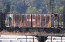 NYC 50717 is seen bad ordered at Cumberland MD on 8/9/12. Car is ex CR 50717/PC 877160/PRR 257502 built 12-55 and rebuilt to a ballest hopper in 6-77.