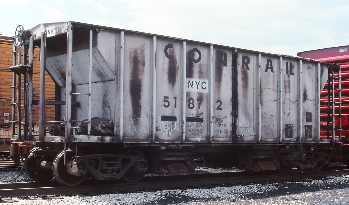 Previous Next Car is ex CR 51872/PRR 257978 and was rebuilt to a ballast car 11-78 Photo By Jeff Weaver Equipment Type Class H34C Conrail Number 51872 Post Conrail Owner CSX Post Conrail Number CSX 51872 Year 2001 Original Date 5/27/01 Collection CRHS Conrail Photo Archive Contributions