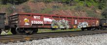 NYC 576006 is seen on W951-08 at Fairhope PA on 8/11/12. Car is ex CR 576006/PC 576006 and was built 2-68.