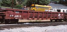NYC 576813 is seen on CSX K501-02 at Viaduct Junction in Cumbrland MD on 6/3/02. Car is ex CR 576813/PC 576813 and was built 4-68.