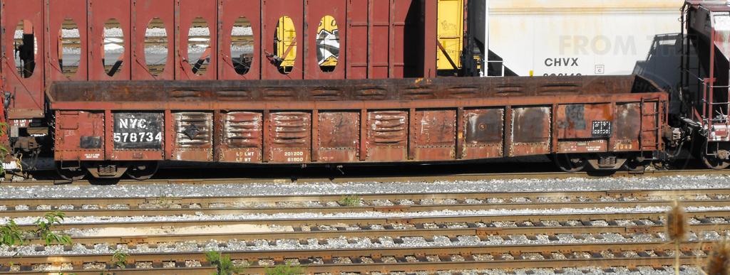 NYC 578734 is seen at Cumberland MD on 8/11/12. Car is ex CR 578734/PRR 387890 built 12-66 and rebuilt 1-91.