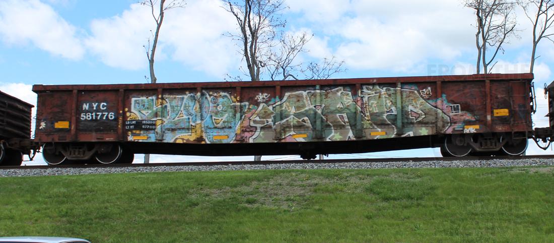 NYC 581776 is seen in the consist of CSX Q438-26 at Newark, DE on 4/28/15. Car is ex CR 581776 and was built 4-80.