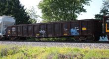 NYC 581907 is seen in the consist of CSX Q422-29 at Newark, DE on 5/30/22. Car is ex CR 581907 and was built 5-80 by CR.