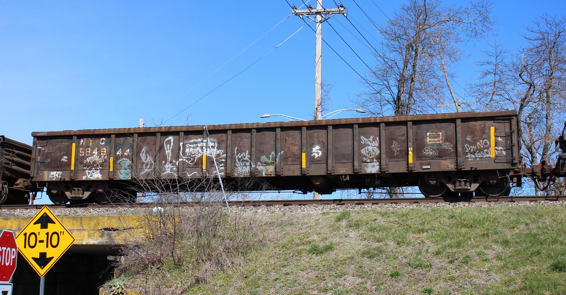 NYC 584944 is seen in the consist of CSX Q439-13 at Newark, DE on 3/14/20. Car is ex CR 584944/SB 6114 and was built 5-80.