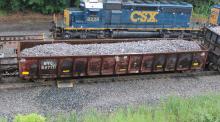 NYC 587111 is seen in the consist of CSX D721-14 at Cumberland, MD on 6/14/17. Car is ex CR 587111/CR 584378/EL unknown. It was restenciled to CSXT 917001 in March of 2021.