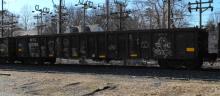 NYC 587355 is seen in the consist of CSX K551-10 at Newark, DE on 3/13/14. Car is ex CR 587355/CR 564273/PC 564273/NYC 720273.