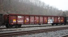 NYC 588631 is seen at Hancock, WV on 1/1/22. Car is ex CR 588631/CR 578776/PC 578776 and was built 3-70.