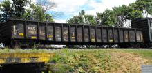 NYC 598465 is seen in PC paint on Q409-25 at Newark DE on 6/26/12. Car is ex PC 598465.