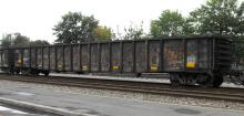 NYC 598497 is seen on Q394-08 at Cumberland MD on 8/9/12. Car is ex PC 598497 and was built 7-68.