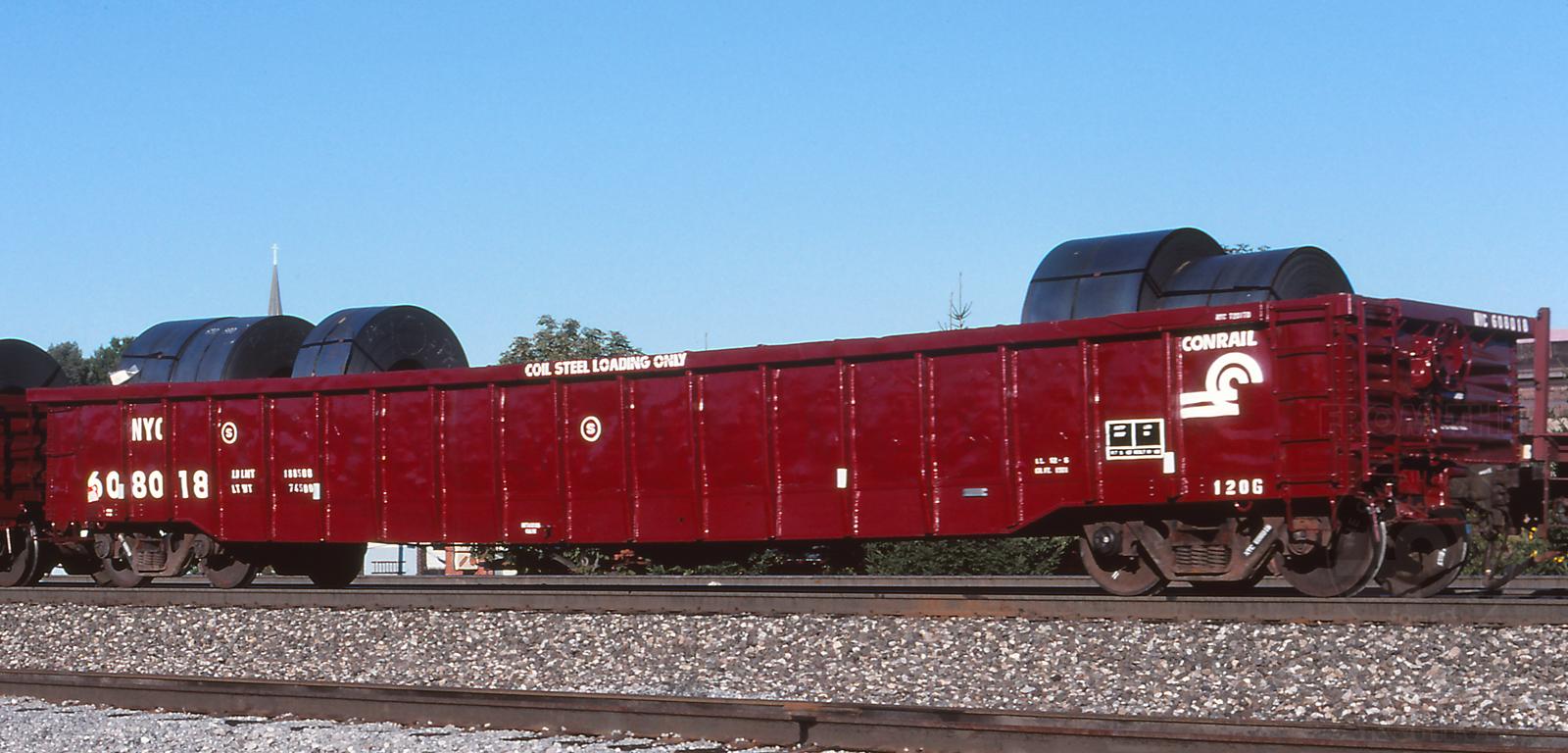 NYC 608018 is in train BAPI-8 at Cresson, PA on 8/19/98. Car is ex CR 608018/CR 583868/NYC 720??? and was built 11-67.